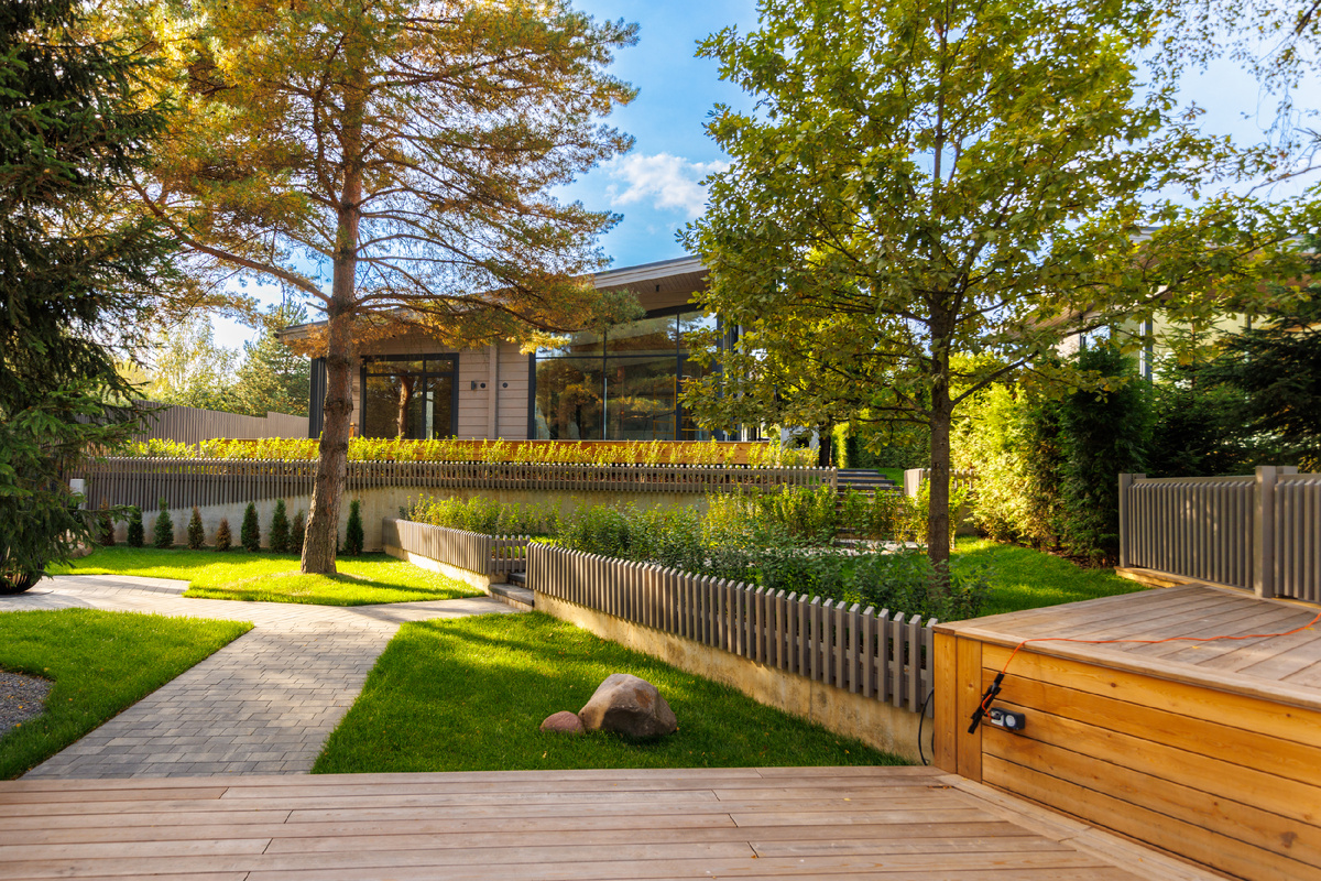Ландшафтный дизайн должен органично дополнять интерьер: стоит уделить внимание растениям, которые особенно эффектно смотрятся осенью. Клёны и декоративные яблони с их яркой листвой, вечнозелёные хвойные, которые даже зимой сохраняют структуру и цвет, а также декоративные злаки - всё это создаст гармоничную композицию.