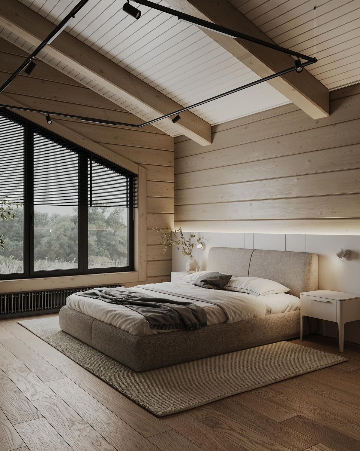 Вспомогательные и функциональные элементы подбирают под оттенок/текстуру отделки и мебели. Это позволит сохранить стилистику интерьера дома из клееного бруса.