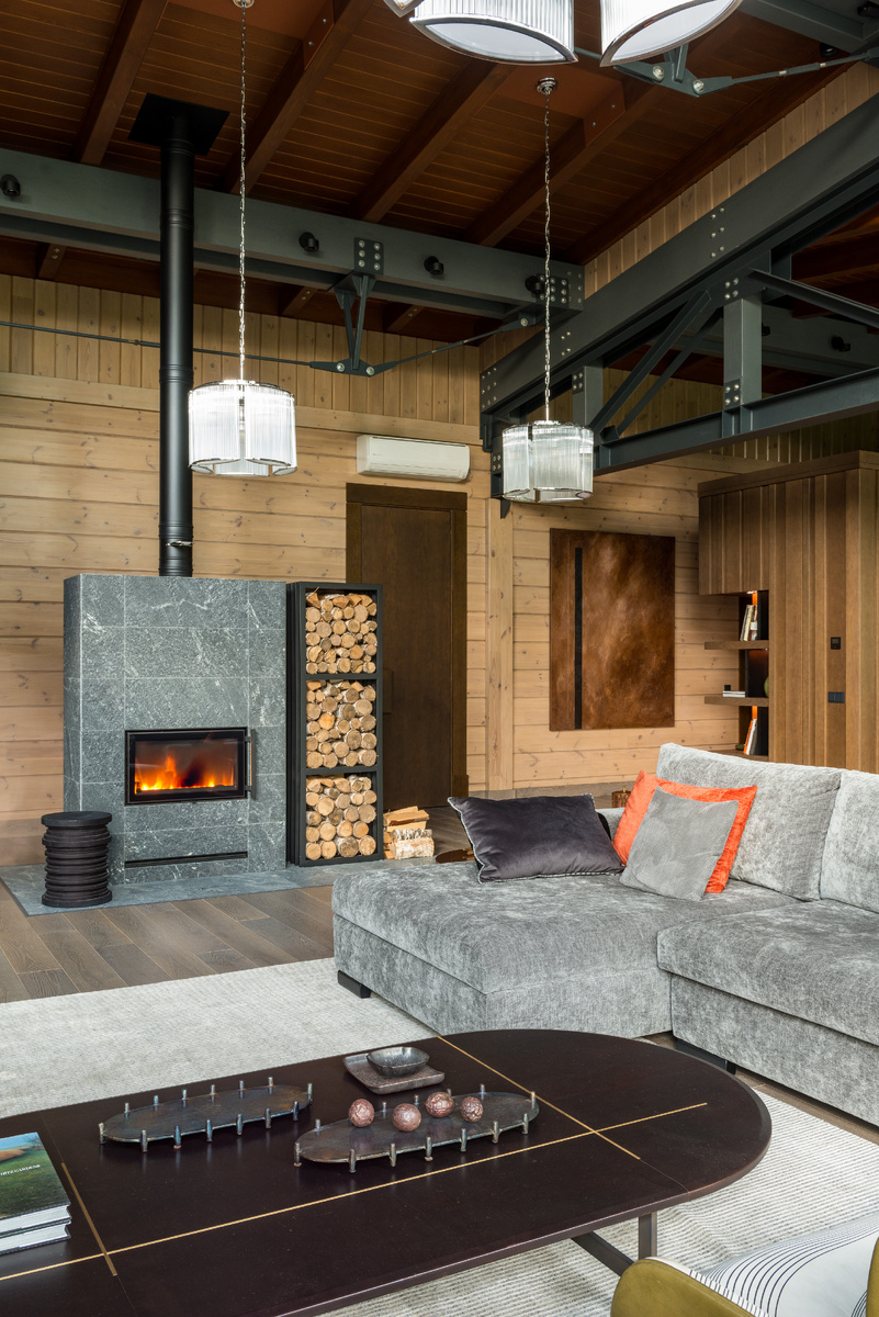 Чтобы сбалансировать теплоту текстиля и древесины, можно добавить элементы, которые внесут в интерьер нотку сдержанной элегантности. Столешница из травертина, полка для камина из песчаника или ваза из керамики, созданная вручную, станут изысканными деталями, которые придадут пространству особый шарм.