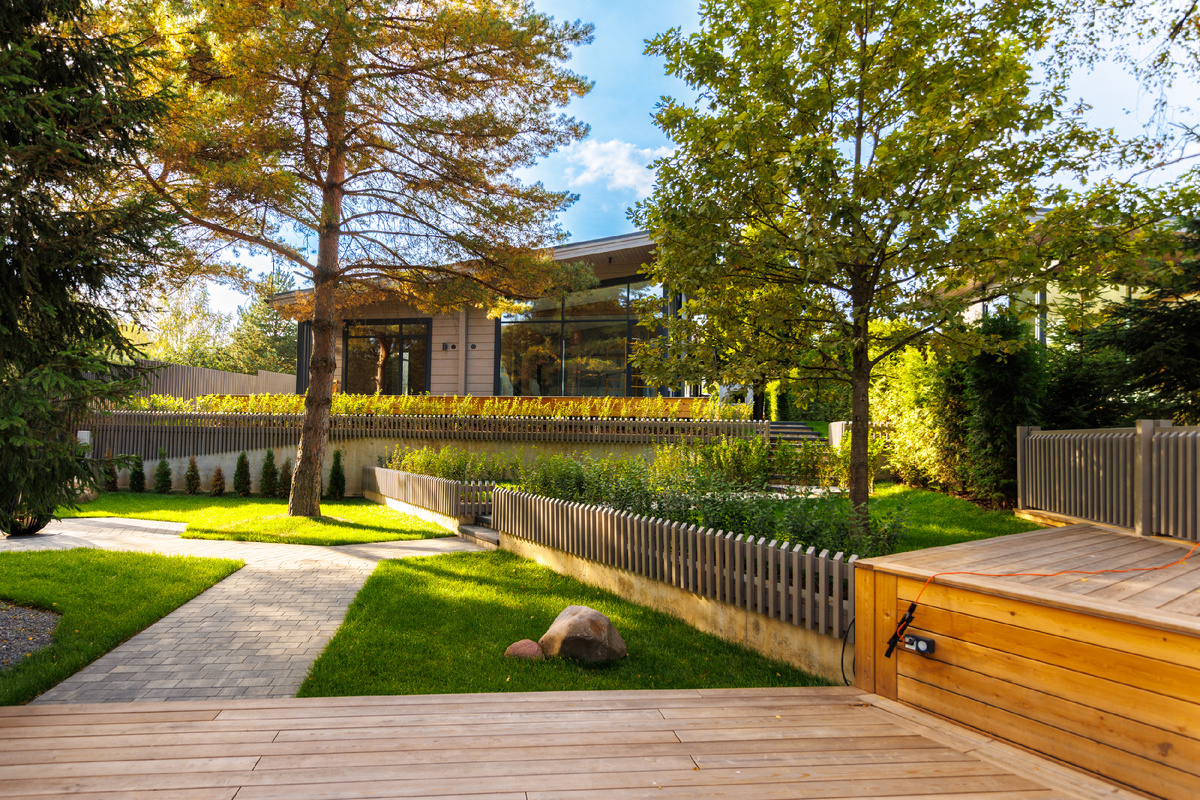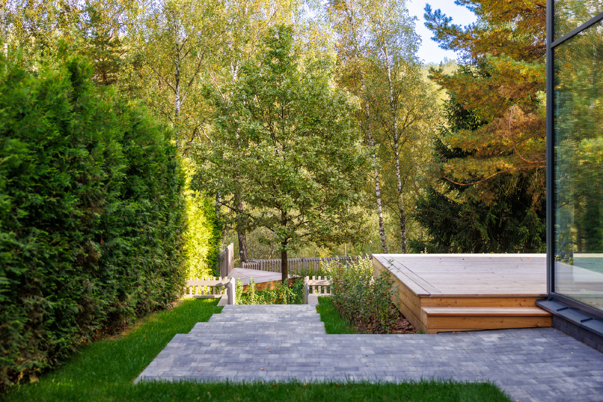 Также стоит задуматься о степени уединённости пространства: с опаданием листвы пейзаж становится более просматриваемым, и важно убедиться, что участок сохраняет необходимую степень защищённости от любопытных взоров соседей.