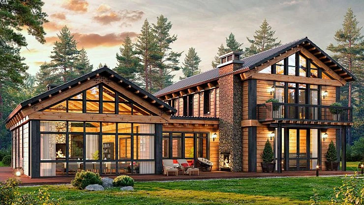 Деревянное домостроительство на равных конкурирует с кирпичным, а по некоторым характеристикам выглядит даже более предпочтительным. Для строительства домов используются несколько видов деревянных материалов. Это оцилиндрованное бревно, брус из массива и клееный брус. Первый вариант обычно подходит для постройки срубов и бань. Массивные дома в узнаваемом русском стиле привлекают любителей старины. Однако бревно из-за своей высокой влажности довольно капризный стройматериал, кроме того, срубы имеют ограниченное количество проектировочных решений.