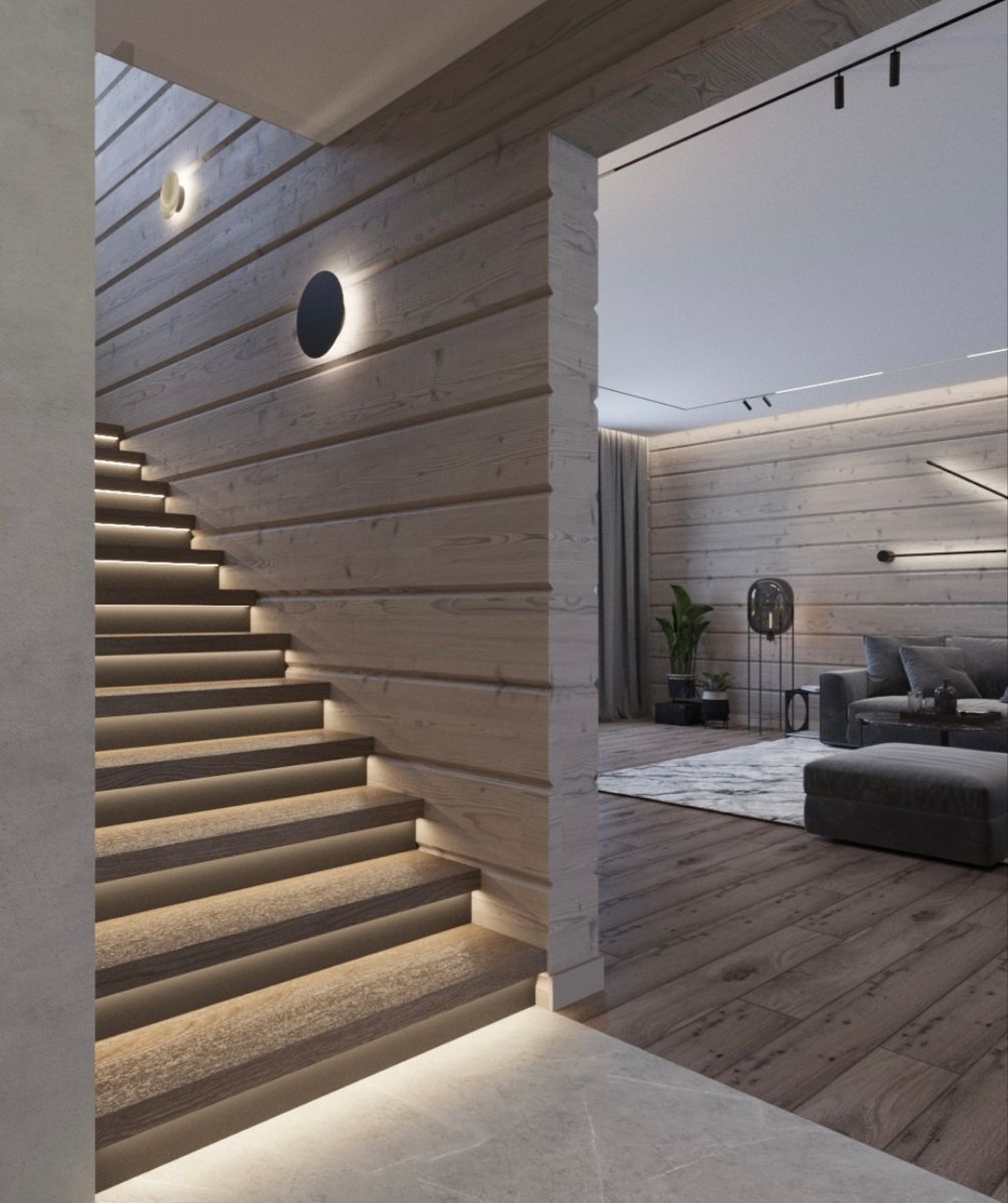 Осветительные приборы. Недостаточное освещение может привести к несчастным случаям, поэтому нужен достаточный уровень освещенности в зоне подъема/спуска — не менее 20 люксов. Для этого можно использовать светильники или встроенные в подступенки источники света.