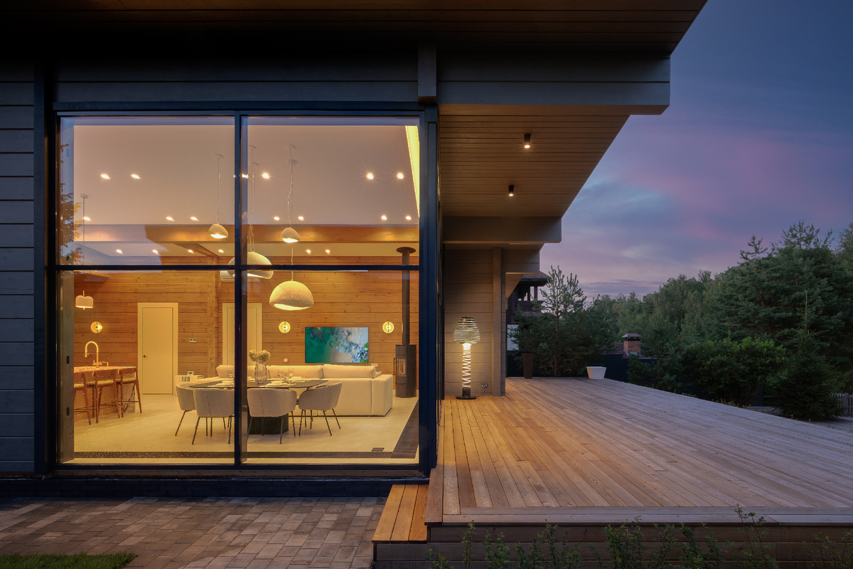 Когда осень вступает в свои права, окружающий мир превращается в мастерскую природного искусства, окутывая загородный дом неповторимой атмосферой. Прежде всего, внимание привлекает трансформация освещения, а по вечерам сцену озаряют тени — их источник пламя камина, создающий игру света и мрака.